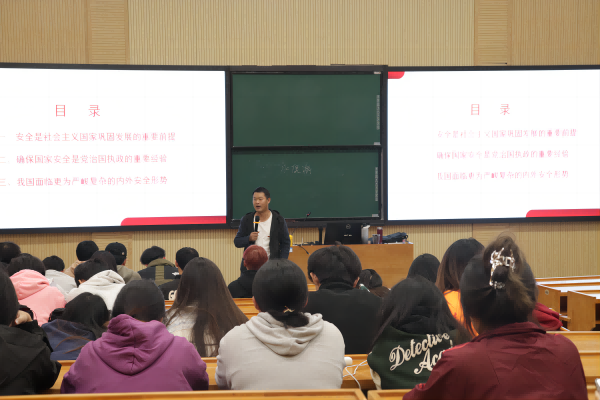 11月8日,马克思主义学院习近平新时代中国特色社会主义思想概论教研室舒求福老师在第二学术报告厅为学校新一期青马班开展理论微宣讲,本次微宣讲的主题是“国家安全是民族复兴的根基”。