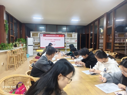 为深化思政课教学改革,提升育人实效,11月5日晚,湖南信息学院马克思主义学院思想道德与法治教研室在励智楼135召开学生座谈会。学院副院长颜福维、教研室主任罗达及2025级部分学生代表参会,通过现场交流与问卷调查,精准收集教学意见。