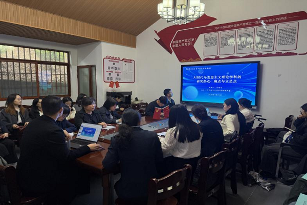 4月21日下午,马克思主义学院在励智楼106会议室举办第1期青年学术沙龙,聚焦“AI时代的马克思主义”展开研讨。副院长苏同欢作专题报告,青年教师李娟、秦志欣等与谈。