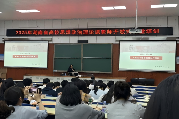 4月25日下午,湖南省高校思想政治理论课“思想道德与法治”第三期开放式课堂培训在湖南文理学院举行。本期由湖南科技大学马克思主义学院周文斌教授主讲,由湘潭大学马克思主义学院院长颜佳华担任点评专家,来自全省130多所高校思政课教师现场观摩,我院教师杨菁菁参加培训。